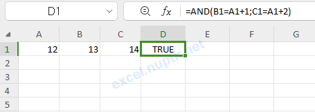 =AND(B1=(A1+1);C1=(A1+2))sumber : support.microsoft.com